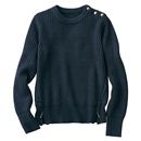 フロント&タートル部分にケーブルを使ったニットは両脇のシフォンフレアがポイント。ボトムスを選ばず主役になれる一着。