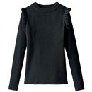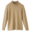 フィット感があるリブ編みに、旬のプチハイネック。スウィートな肩フリルは一枚でも、ワンピのノースリーブからのぞかせても素敵☆