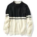 大人っぽくキマるざっくりとしたあぜ編みニット。旬のスタンドカラーとブラック&ホワイトのバイカラーがポイント。