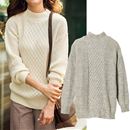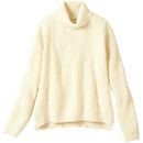 ほどよく首に沿うハイネックとドロップショルダーで、ゆったりサイズが今季らしい一着。ナチュラルなざっくり感に、フロントの編み地がポイント。