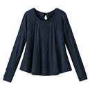 生地表面に表情を与える立体的な編地が印象的な1着。かすりならではの色合いが品よくアクセントを加えます。