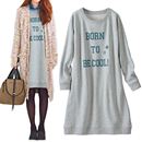 ボーダーと無地の切り替えワンピ。どちらもカットソー素材で着心地は抜群。身頃のボーダー生地はポコポコとした立体感があり暖かな印象、袖とスカート部分はフラットな素材。