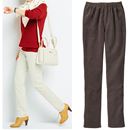 冬定番のコーデュロイパンツは、伸縮性があり動きやすく、ウエスト総ゴムで楽ちん。合わせやすいストレートシルエット。