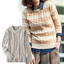 大好評の総ケーブル柄ニットにトレンドの太ボーダーが加わり、より豊富なラインナップに。ボトムを選ばないベーシックデザインが人気の秘密。