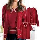 シックなボルドーもライン使いでカジュアルダウン。すっきりデザインのリボンがアクセント。セットで着ればきちんと感も演出できて、カーディガンはどんな着こなしにも合わせられて万能!
