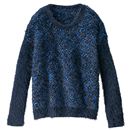 生地表面に表情を与える立体的な編地が印象的な1着。かすりならではの色合いが品よくアクセントを加えます。