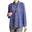 カーディガン+長袖ニットのスマートヒートニットアンサンブル。トレンド感たっぷりのウインドウペンとボーダー柄。
