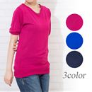 すぐ着られる半袖Vネックはキャッチーな太幅カラーブロック。トッパーカーデはボタン留めでカシュクールにもなる2WAY。