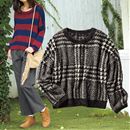 カーディガン+長袖ニットのスマートヒートニットアンサンブル。トレンド感たっぷりのウインドウペンとボーダー柄。