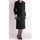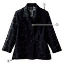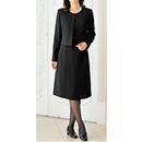 ミセスの体型に合わせて、バストやおなかまわりなど、ゆったりしたパターン設計のブラックフォーマル。ヘチマ衿のジャケットが、ペプラムウエストで腰が高く見え、すらりとした印象を与えてくれます。