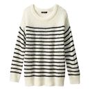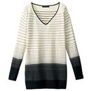 ヒップがかくれるロング丈で気軽なジャケットタイプのカーディガンとカジュアルな印象のVネック半袖ボーダーニットのワザありツインニット。