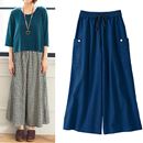 ゆったりスカート風なワイドシルエットのパンツ。さらりとした感触の綿麻素材で、ウエストは総ゴム仕様のラクなはき心地も魅力。