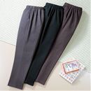 強力ヨコストレッチとウエスト総ゴムではき心地ラクラク。適度にハリのある織物素材がきちんと感を出しながら、のびのびパンツにありがちなムチムチ感を軽減。