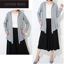 インナーが見えにくい程よい衿開き、アームホールと胸まわりはゆったり、長めの裾広がりデザインで腰まわりをスッキリカバー。