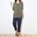 さらっと心地いい綿混素材のプルオーバー。衿元のギャザーがさりげなくおしゃれなポイントに。