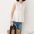サラッと軽やかな綿100%のブラウス。フロントの切り替えとふわっとしたフレアシルエットで気になる体型をカバー。