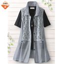 フロントに施した幾何柄のレースが涼しげなカットソーカーディガン。さっと羽織れて便利なボタン無しのトッパータイプ。