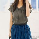 今どき感ある重ねVネック、フレンチスリーブとフロントのタックが、ジャケットを脱いだときも可愛い印象を与えます。