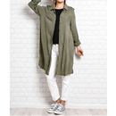 M〜4L展開★やや長めの丈感だから、体型をカバーして細見せ効果◎綿ダンガリーの素材感を楽しんで♪どんなボトムにもあわせやすい1枚です。