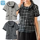 透け感のあるシャドーチェック素材を使用。襟先のビジュー&パールビーズ装飾が顔まわりを華やかに演出してくれます。