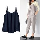 さらりとした肌ざわりのレーヨン100%のタンクトップ。涼やかで軽い1枚仕立て。衿ぐりにギャザー、サイドにスリット入り。