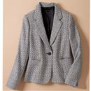 ベーシックなテーラードジャケット。ブラック系はオフホワイト×ブラック、ブラックは単色のツイード仕様。