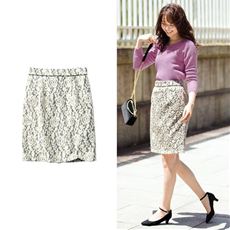 上品なヒザ丈の台形スカート。縦と横の切り替えパターンですっきりと見せながら、美しく流麗なシルエットに。