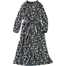 レトロな花柄ワンピは、マキシ丈&上品なネイビーベースで大人っぽく着られる1着。さりげないプチフリルのスキッパー襟もキュート。