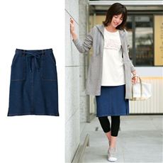 すっきりとしたタイトシルエットは、トップスのボリュームに左右されることなく着まわせて便利。きちんと感があるのに、ウエストはゴム仕様で、楽なはき心地です。