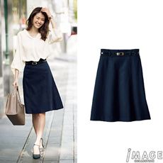 ベルト付きAラインスカート