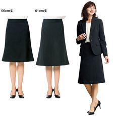 裾が広がって動きやすいマーメイドスカートは、きちんと感のあるエレガントなスーツスタイルに。56cmと61cmから、お好みの丈をお選びいただけます。