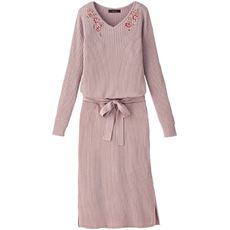 共地ベルト付き刺しゅう使いニットワンピース