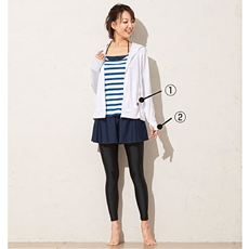 海やプールから、ヨガやウォーキングなど幅広く活躍するレギンスとショートパンツのセット。気になるお腹、お尻、脚をカバー。