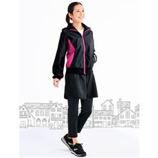 【ジャケット】大きくくびれた切り替えで、細見せシルエットの効果あり。【レギンス】ストレッチ素材で動きやすく美脚見せ効果も。