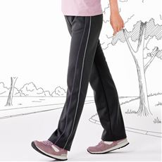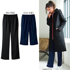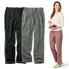 暖かな肌ざわりと深めの股上で快適なパンツ。暖かな裏トリコット素材で秋冬に重宝。さらに裾ゴムが冷気の侵入もセーブ。