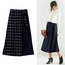 程よい伸び感ですっきり!なめらかなレーヨン混素材のラップ風スカート。シンプルなトップスに1枚合わせるだけで華やかに!程よい丈感とAラインが体のラインをひろわず綺麗なシルエット。