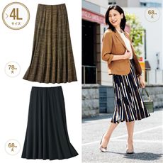 動く度に揺れるドレープ感が美しい12枚はぎのフレアスカート。合わせやすいブラウン系と、落ち着いたネイビーの花柄と、ストライプ、ブラック無地をご用意。