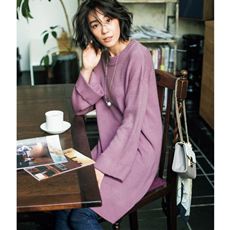 編み地変化を施したシーズンムードたっぷりのざっくりニット。ドロップショルダーのチュニック丈もこだわり。