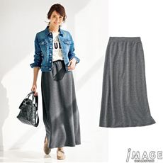 細畦と揺らりと落ちるラインですっきり脚長見えのロングスカート。タイト過ぎず楽ちんに着こなせます。裏地付きで安心して着用できます。