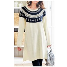 ボーイズライクなノルディックな柄をAラインのチュニック仕様にして女性らしさを引き立てる1枚。大人っぽい色合いでこなれ感も。