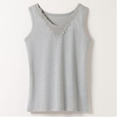 胸元のトーションレースが着こなしのアクセントになる、お手頃プライスのタンクトップです。