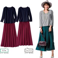 厚手のカットソー生地使用で、脚さばきの良いサイドスリット入り。旬のサックロングワンピースは、7分袖を選べば多シーズンで使える。