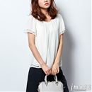 丸衿とパフ袖が女性らしいレーシーなシャツ。