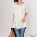 胸元に繊細なレースを使ったチュニックブラウスは、ガーゼ風の素材が大人のリラックス感を演出。ウエストのリボンでブラウジングも可能。