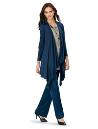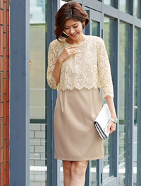 ふんわりはおれるカーディガンと、裏地付きで透けが気にならないトップのセット。清涼感のあるレース素材を贅沢に使用しました。