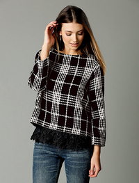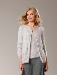 とても柔らかく、毛足の長いヘアリーな糸で編み上げたニットツイン。スパンコールが美しく煌めいて装いを格上げします。