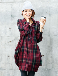 今年注目の格子柄素材を使った、清涼感のあるチュニック。ヒップラインをカバーできる丈で、そのまま着られるキャミソール付き。