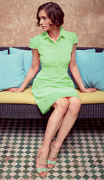 シャーベットの様な優しいカラーのパネルレースのシャツワンピースです。様々なシーンに着こなすことが出来るFEVERならではのスタイルです。