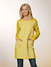 ひざ上丈のチュニックは、サイドの長いスリットが特徴。同素材のパンツも着用感がよく、単品でも存分に活用できます。