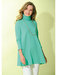 ウエストで斜めに切替えたぺプラムデザインとアシンメトリーな裾ラインがおしゃれ。ゆとりのシルエットでヒップもカバーします。